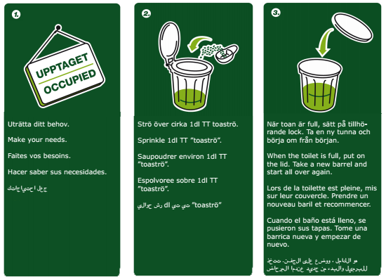 Vid egen hantering av toalett, kolla med din kommun vad som gäller angående hantering av latrin och kompostering.